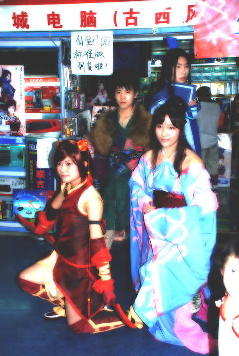 特别让人感动的是,一些忠实的玩家自发自费的组织了《仙剑奇侠传四》主题人物的cosplay,服装精美,人物精致。购买游戏的玩家纷纷与之合影留恋,为最爱的仙剑做个见证。