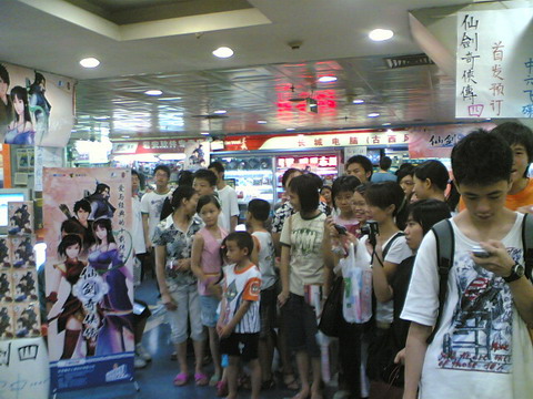 昨天,我们在广州中六电脑城看到了《仙剑奇侠传四》火爆的首发场面,购买游戏的玩家排成长龙,大家翘首以待,急迫的希望能在第一时间拿到产品,因此,在短短的四个小时内,中六电脑城就卖出了将近1000多套,创下了自《仙剑奇侠传三外传?问情篇》以来的又一个销售高峰。