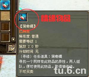 注意:如果和心里早已心仪的ta没有拿到同一情缘物品怎么办呢?呵呵,没关系,你可以把物品丢掉,放弃寻缘任务,然后重新到小环那里去拿一个就可以了,直到拿到和心仪的ta相同的物品为止,还是瞒简单的。