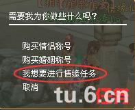 1. 这个任务是要在情缘仙子那里接到,进入一个单独的副本,在25分钟的时间内需要通过“寓情于花”使彼此的爱情值达到5000。第一做的时候我在25分钟内才拿到500多一点的爱情值,汗。第二次以1000多一点的爱情值再度失败。至今仍没有摸出门路><~