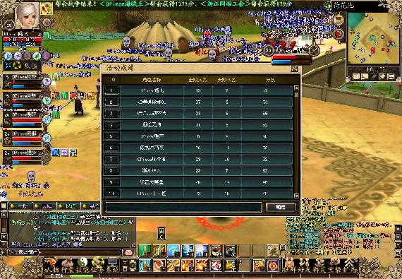 在帮会战开始前,我们早早做好了准备,OP的所有人员集中在YY3700频道的统战部,游戏里在大理集中,修好装备,买好药品,做好了战前准备,接着大家就陆续进入帮会战副本里,开始组队,一队一医生,二刀客,一五灵或灵狐,一剑侠一练气,我们在十分钟内组好队伍,做好战前思想战略,共16队,一共96人参加,可以说是规模空前了。时间一到,大家冲上阶梯,交锋开始,由刚开始的不相上下,直到中期时,浙江网游公会因为实力悬殊而全面瓦解,OPiec海贼王以1018分比上695分占据领先位置,终于,在最后一分钟在浙江网游公会没有时间作出有效的组织时,