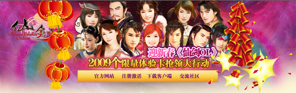 在这新春即将来临之际,为回馈一直支持《仙剑OL》的广大用户,特推出“2009个限量体验卡抢领大行动”活动。即日起,共计有2009个限量体验卡在《仙剑OL》官方活动页面进行发放,限量限时供应,先到先得,送完为止。凡是久游网用户,均能通过此活动页面限量领取体验卡,限量体验卡可以激活现有的任意大区之一,让你进入侠骨柔情的仙剑江湖,体验《仙剑OL》传世经典的独特魅力,和大家共同欢庆即将到来的新春佳节。
