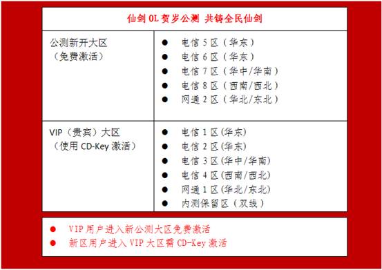 有支持就有回报!《仙剑OL》公测之后,现有通过购买并使用CD-Key激活的用户将全面升级为VIP用户,之前的开放测试大区同时升级为VIP大区,新用户进入VIP大区需购买CD-Key。凡VIP用户都可永久享受以下贵宾级VIP服务: