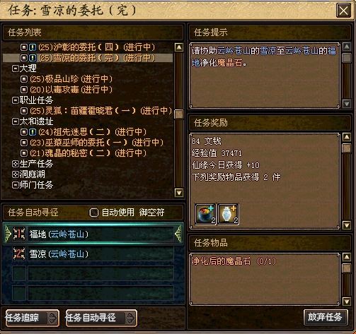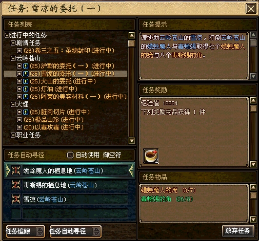 循环任务:25级雪凉的委托_云岭苍山