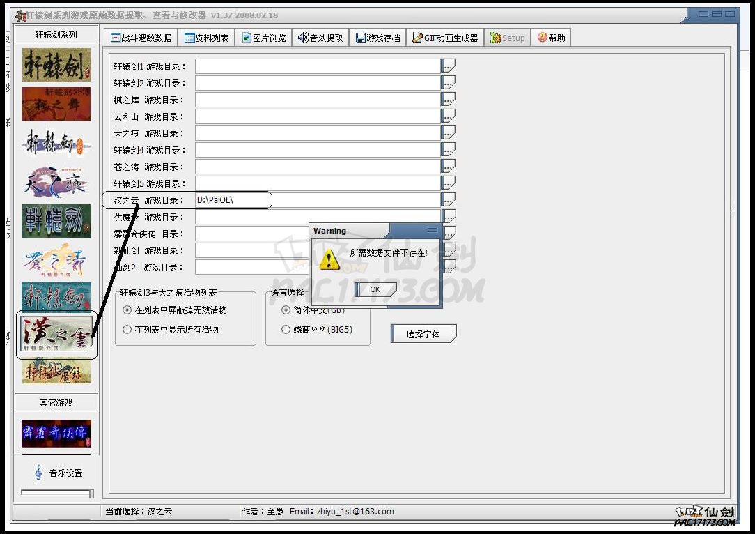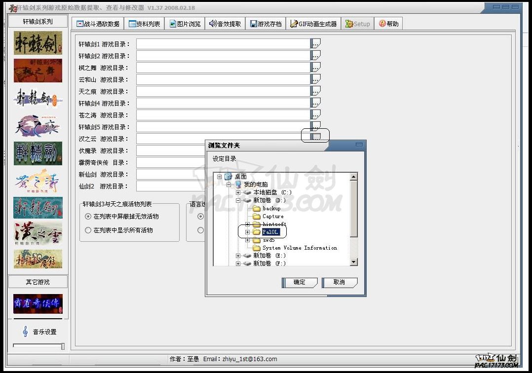3.点击Setup,并点击“轩辕剑五 游戏目录”或“汉之云 游戏目录”旁边的浏览按钮。