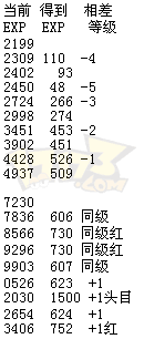 最近才发现打怪的EXP相差非常大,仔细数了下,打同级到低1-2级的比较合适(-1和-2本来EXP就要少点),打红色怪物和小头目也要比普通的怪获得的EXP要强