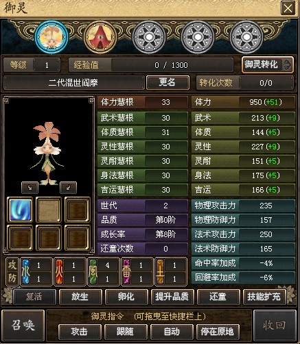 玩家建议:打造一个好的御灵最好一开始就进行还童,然后再考虑其他升级操作。