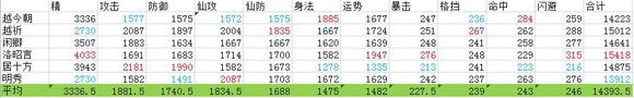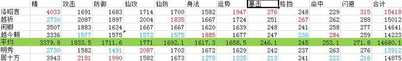 明秀和祈全人物最低,明秀作为一个法师,无可厚非,祈有着优秀的其他数值,所以精略低也没关系。。问题是……小今朝你要知道你是个近战啊,不管是双刀还是二合一的***,你的精在平均值下真的可以吗……