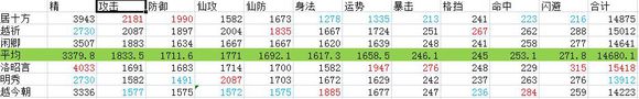 祈妹子不做第二啦!超过小秀儿变身仙防第一人。秀儿你别上火啊、、整天生气会长鱼尾纹的啊……洛昭言和居十方都在平均值左右,由此看来,对于仙术攻击强劲的敌人似乎用昭言做T会更稳妥一些?而垫底儿的……怎么又是你啊今朝……请允许我做一个悲伤的表情,皮脆,血少,攻击低,要你何用,万年板凳之!