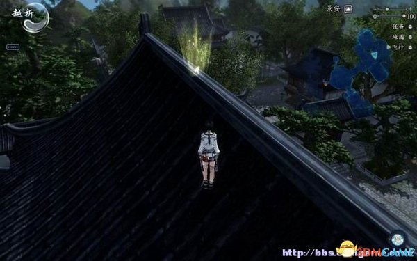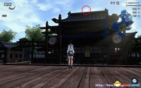 第三个探索点在正武盟,练武场前面的大殿屋顶。