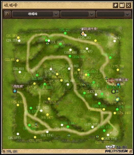 注:白点表示:生魂冢 黄点表示:铜矿 绿点表示:中麻树